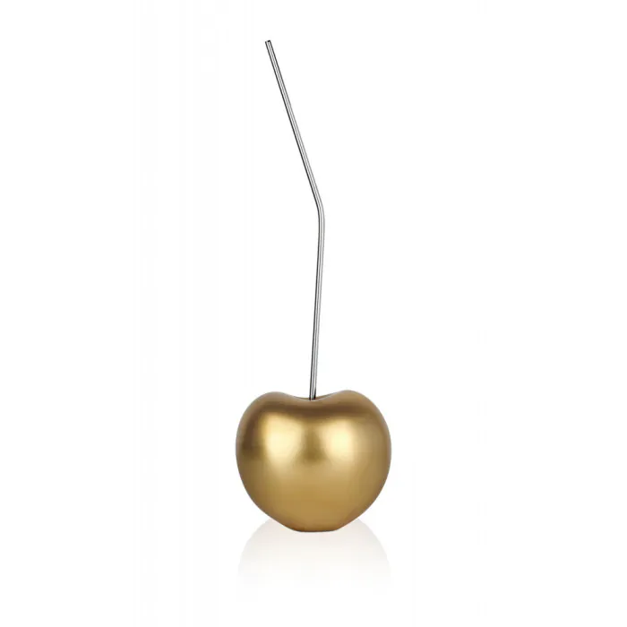 Cependant, l'œuvre repose principalement sur la symbolique de la cerise dorée. Elle peut symboliser l'appétit, le plaisir de savourer un fruit, voire l'abondance, car il s'agit non pas d'une simple cerise, mais d'une version dorée mesurant 44 cm de hauteur, 14 cm de largeur et 12 cm d'épaisseur. Cette pièce unique constitue une véritable déclaration artistique qui attirera tous les regards et apportera une touche ludique et originale à votre intérieur.