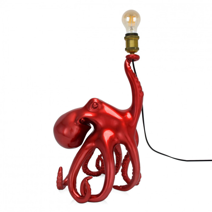 Fabriquée en résine de haute qualité, cette lampe Octopus arbore une finition rouge brillante, supportant un câble porte-lampe compatible avec une ampoule E27 pour un éclairage original. Quand cette œuvre s'illumine, elle façonne une atmosphère unique qui éclaire son environnement, insufflant une dimension artistique et captivante à n'importe quel espace.