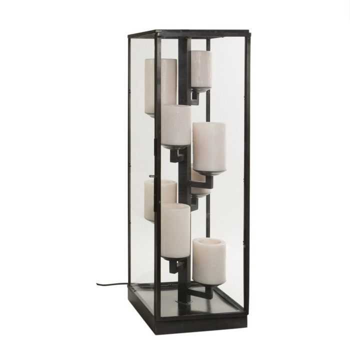 Conçue pour une utilisation en extérieur, cette lampe à poser est proposée en bronze avec 8 bougies (H90cm) ou 14 bougies (H120cm).