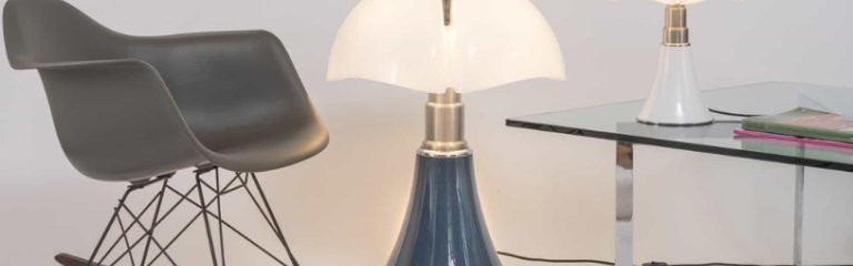 Avec son abat-jour en forme de champignon ou de chauve souris qui semble flotter au-dessus d'un pied télescopique, la Pipistrello évoque une élégance aérienne et une modernité intemporelle.