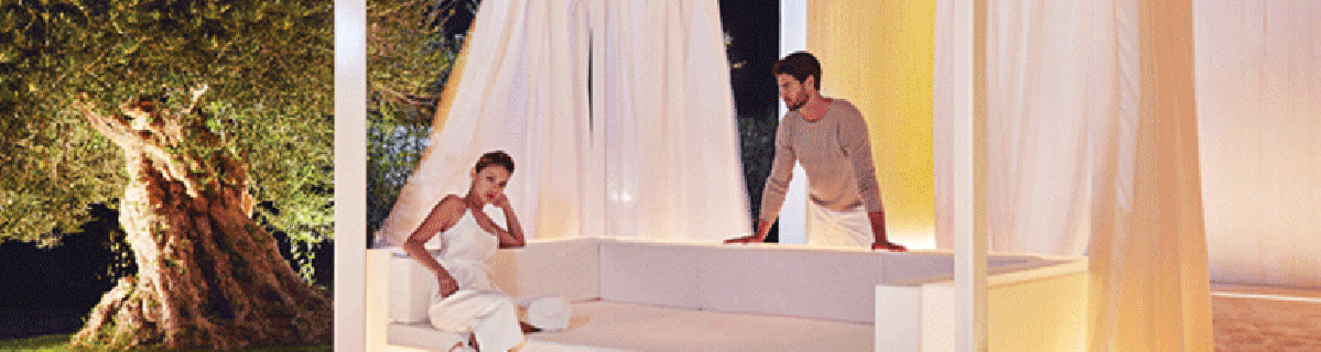 Les collections FAZ et ULM, quant à elles, permettent de créer d'authentiques alcôves sur tous vos extérieurs, en reproduisant de véritables cocons au moyen d'un système très ingénieux et élaboré de pare-soleil, avec en option de la lumière ou même un système de son en Bluetooth.