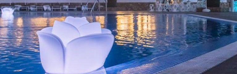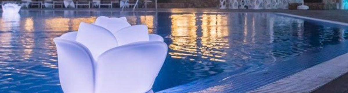 Je terminerai par ma préférée, la lampe Baby Love, magnifique rose stylisée ornementale, avec ses déclinaison géniales, suivant les lieux et vos préférences : en version lampadaire plus ou moins haut ou en suspension et surtout dans votre piscine pour l'éclairer, la sublimer et éclore dans l'eau tel un rayon magique de lumière flottante.