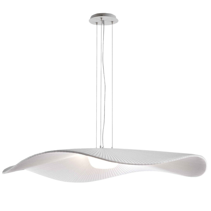 Belle suspension design Mediterrania, du designer Alex Fernandez, pour la marque Bover. Elle est composée d'une structure en aluminium blanc, d'un diffuseur en polycarbonate et d'un abat-jour très aérien en polyester translucide de couleur blanche ou crème, au choix.