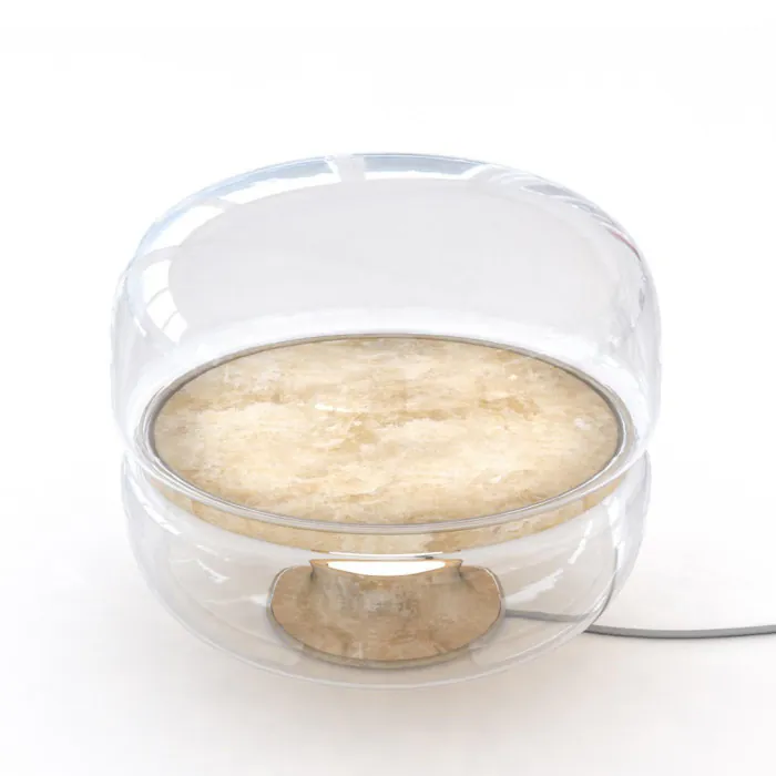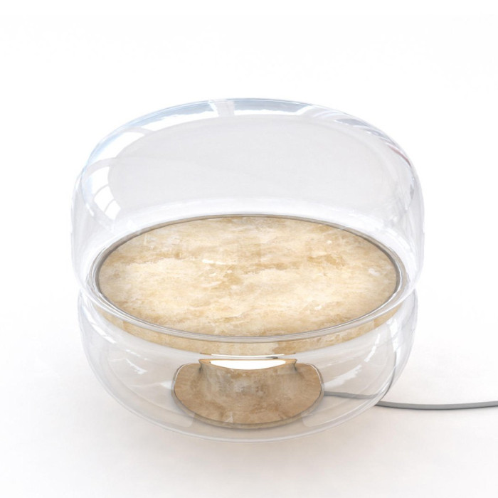 Grâce aux irrégularités naturelles du verre et à la diversité de la structure de la pierre, chaque lampe est un exemplaire unique et de fabrication entièrement artisanale.