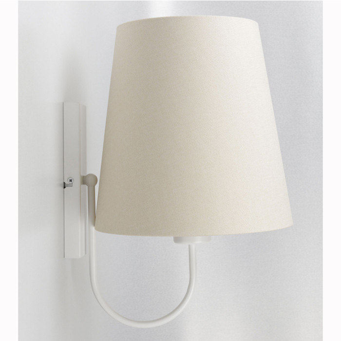 Cette lampe est constituée d'un abat-jour en tissu beige sur un support en PVC (Ø25cm/H17cm) et l'intérieur est couleur crème.
