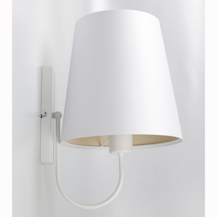 Cette lampe est constituée d'un abat-jour en tissu blanc sur un support en PVC (Ø25cm/H17cm) et l'intérieur est couleur crème.