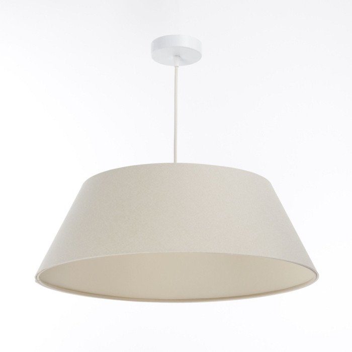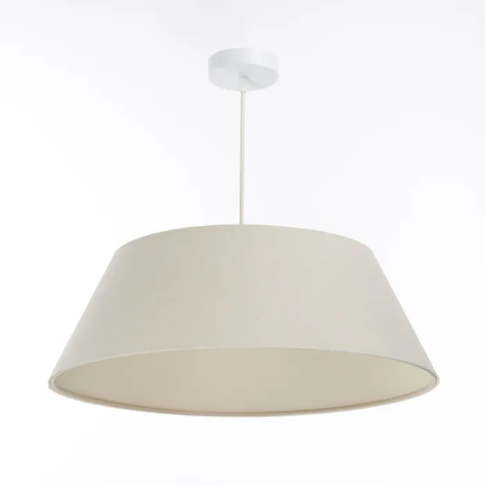 Ce luminaire est constitué d'un abat-jour en tissu beige sur un support en PVC et l'intérieur est couleur crème.