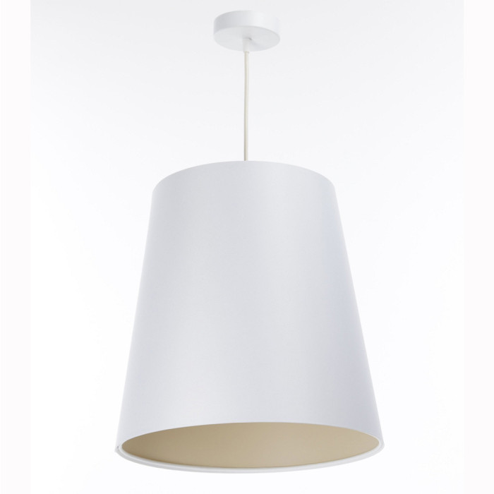 Ce luminaire est constitué d'un abat-jour en tissu blanc sur un support en PVC et l'intérieur est couleur crème.