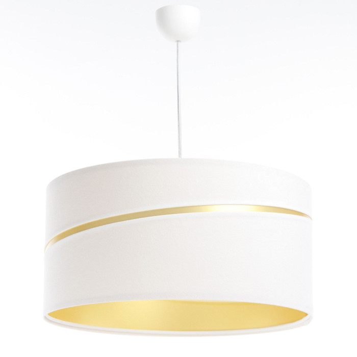 Son abat-jour en PVC est recouvert d'un textile en velour blanc et il est décliné en 4 différents diamètres.