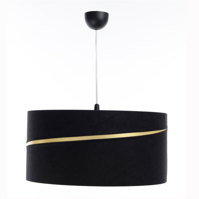 Son abat-jour en PVC est recouvert d'un textile en velour noir et il est décliné en 4 différents diamètres.