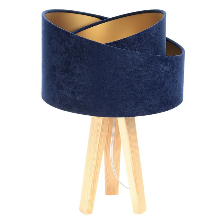 Elle est réalisée avec un abat-jour (Ø30cm/H18cm) asymétrique en PVC recouvert de microfibre bleue roi façon velours et son intérieur est doré ou argenté.