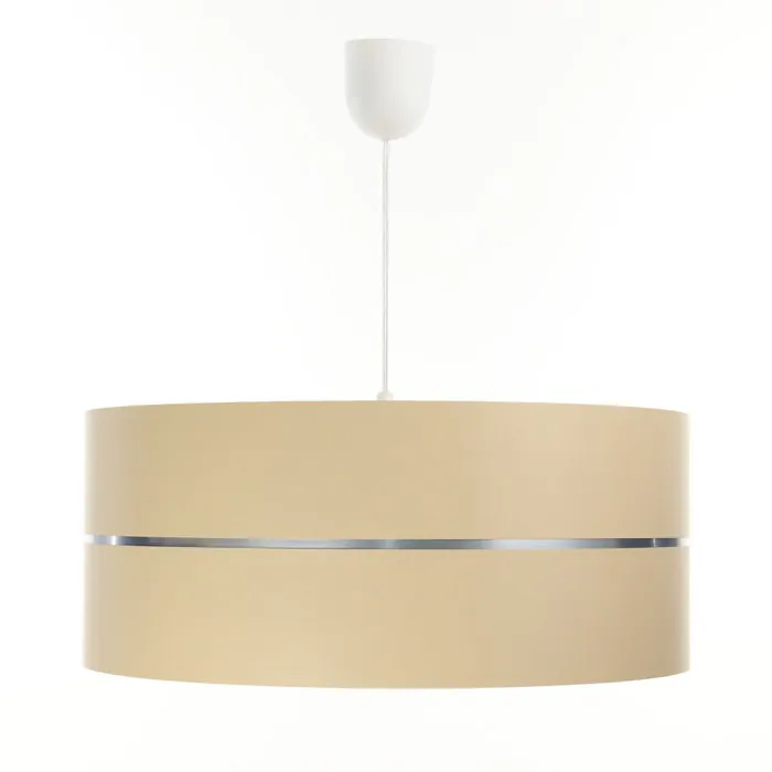 Son abat-jour en PVC est recouvert d'un film crème mat et il est décliné en 4 différents diamètres.