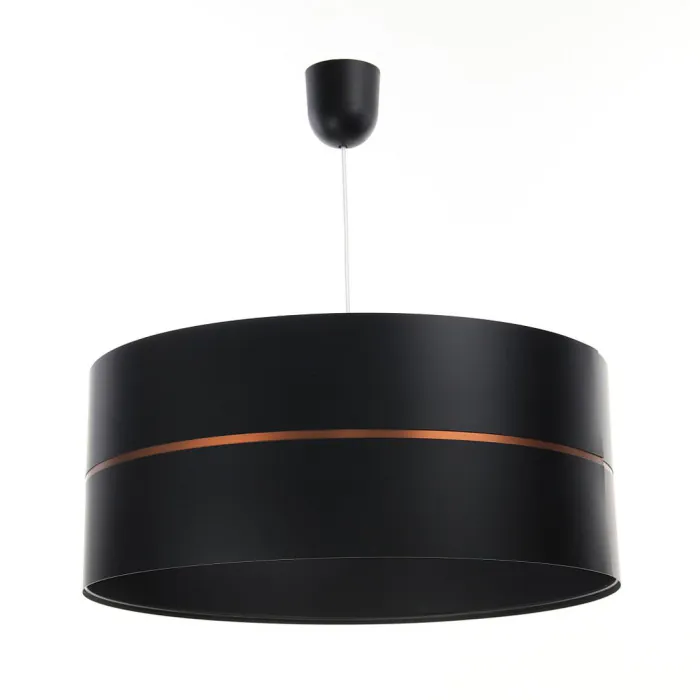Son abat-jour en PVC est recouvert d'un film noir et il est décliné en 4 différents diamètres.