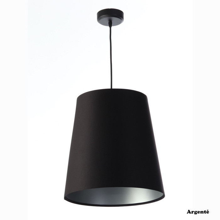 Son abat-jour en PVC est recouvert d'un textile en satin noir qui résiste aux rayons UV et ne se décolore pas lors de l'utilisation.