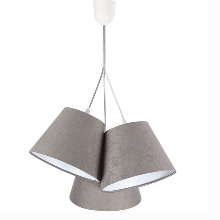 Elle est composée de 3 abats-jour en velours gris avec au choix l'intérieur blanc,argenté ou doré.