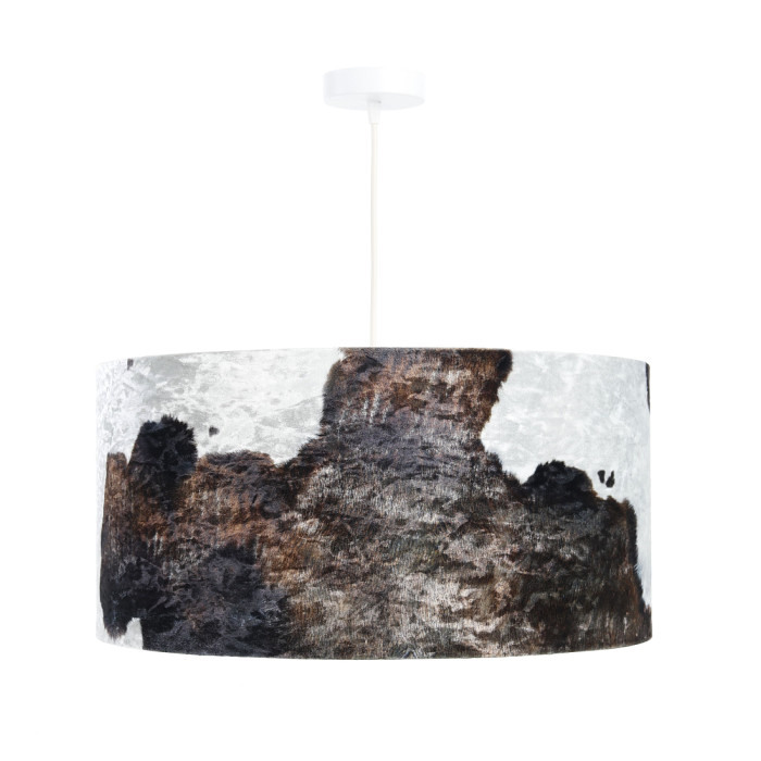Elle est composée d'un abat-jour en velours imprimé façon vache sur une structure en PVC.