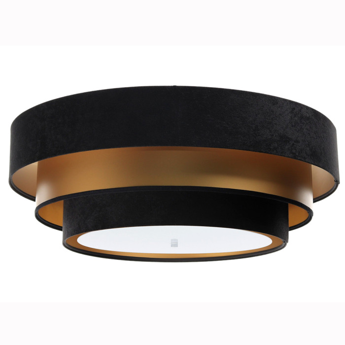 Il est composé de trois abats-jour en PVC posés les uns sur les autres, recouverts de microfibre en velours noir sur deux des trois abats-jour, d'un film doré sur l'abat-jour du milieu avec un liseré noir, et d'un dessous doré pour les trois pièces.