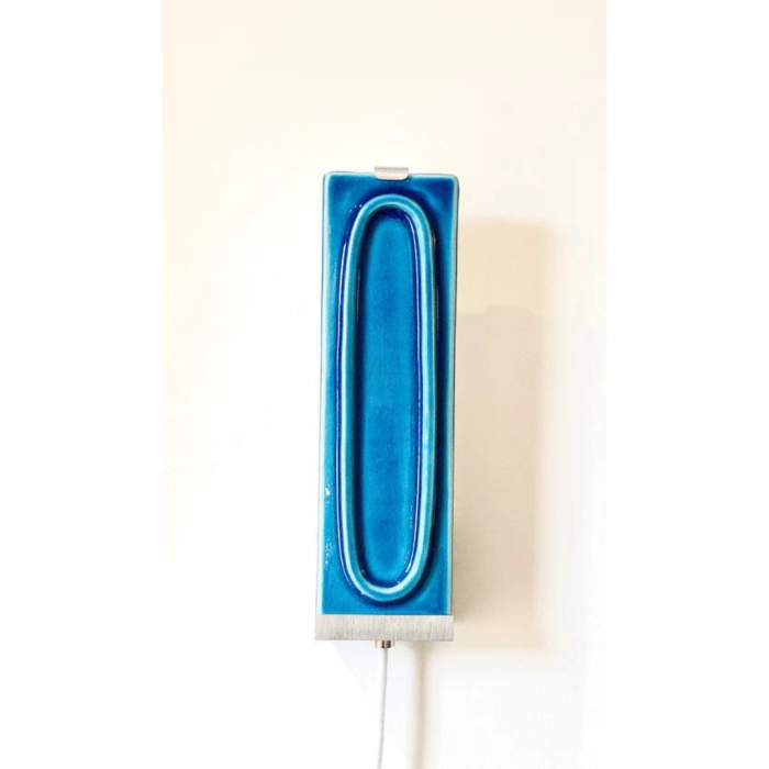 L'applique se distingue par sa forme en carreau de céramique, entièrement fabriqué à la main dans un atelier au Portugal.