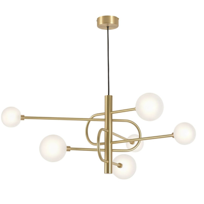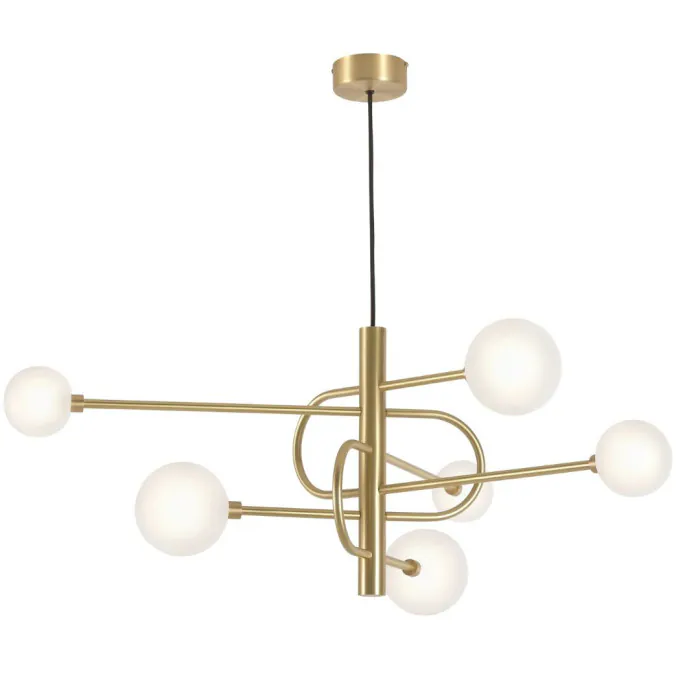 Son allure majestueuse est renforcée par ses six verreries sphériques en verre dépoli qui diffusent une lumière douce et apaisante, idéale pour créer une ambiance chaleureuse et sophistiquée.