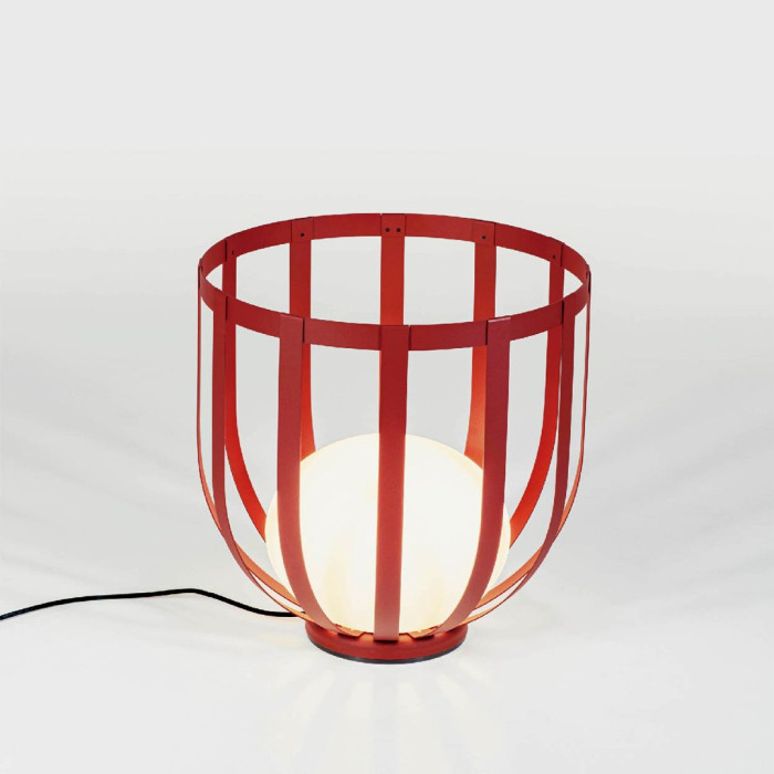 Recouverte d'un double revêtement de peinture extrêmement résistant de trois coloris au choix, cette lampe se distingue par ses formes simples et équilibrées, avec son corps en forme de cage qui emprisonne une ampoule à l'intérieur dans un diffuseur en polyéthylène.