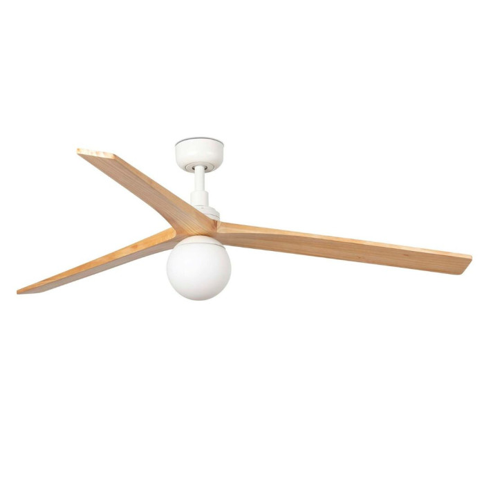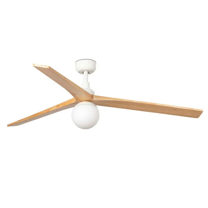 Le ventilateur de plafond Klim taille L, de la marque Faro, se distingue par son design élégant et contemporain, associant une structure blanche à des pales en bois finition chêne pour un rendu chaleureux et sophistiqué.