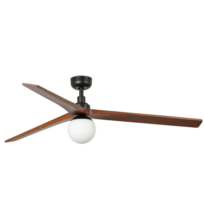 Le ventilateur de plafond Klim taille L, de la marque Faro, se distingue par son design élégant et contemporain, associant une structure noire à des pales en bois finition noyer pour un rendu chaleureux et sophistiqué.