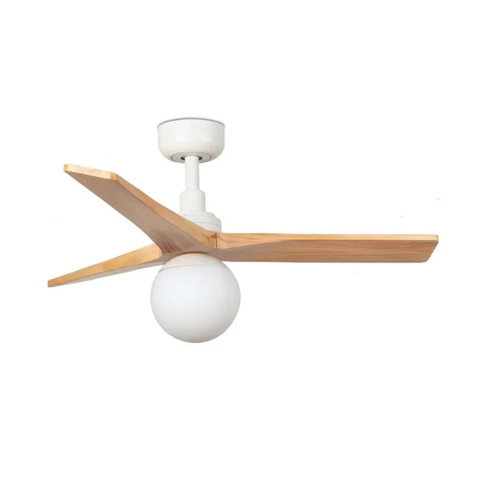Le ventilateur de plafond Klim taille S séduit par son design naturel et épuré, associant des pales en bois de pin certifié FSC à une structure blanc mat élégante. Compact et discret, il s’intègre facilement dans tous les styles d’intérieur et convient parfaitement aux pièces de moins de 13 m². Grâce à son moteur DC silencieux et économe en énergie, il offre six vitesses de ventilation pour ajuster le confort selon les besoins, tout au long de l’année. Sa fonction inverse permet une utilisation été comme hiver, en rafraîchissant l’air en saison chaude et en optimisant la diffusion de la chaleur en hiver. Le ventilateur Klim est livré avec une télécommande équipée d’un temporisateur, permettant de programmer simplement l’arrêt du ventilateur pour plus de confort au quotidien. Adapté aux plafonds inclinés jusqu’à 12°, il garantit une installation stable et un fonctionnement optimal. Son design soigné, ses matériaux de qualité et sa facilité d’utilisation en font une solution idéale pour allier confort, esthétique et performance dans les espaces de vie.