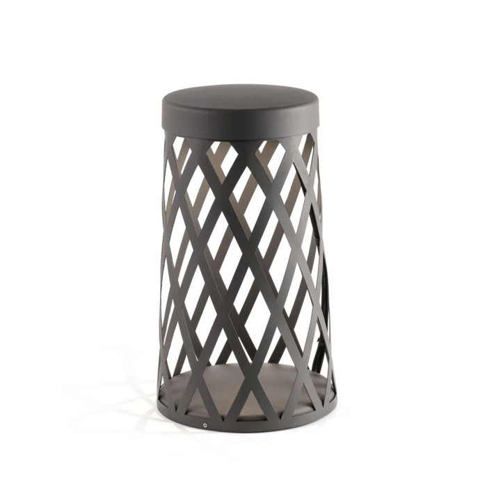 Cette borne d'extérieur est caractérisée par un magnifique jeu de lumières projetées sur le sol grâce à son corps tressé.