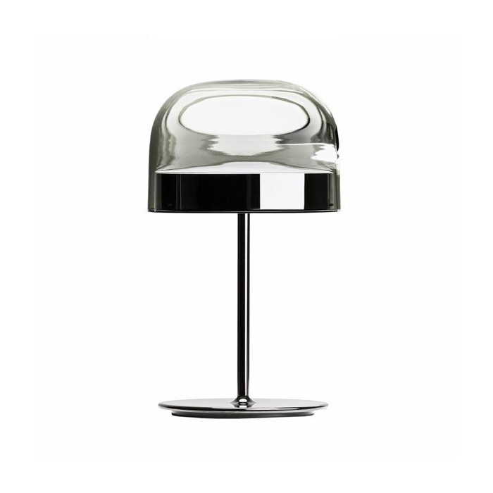 Cette lampe à poser est réalisée en métal cuivré ou noir et possède une superbe cloche en verre soufflé qui se remplit comme par magie d'un halo lumineux.
