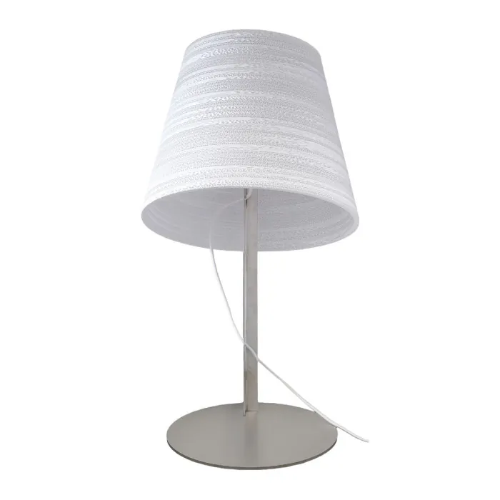 La lampe à poser Tilt, est une conception de la marque Graypants, qui crée des luminaires et des objets à base de cartons recyclés, fabriqués et assemblés à la main.