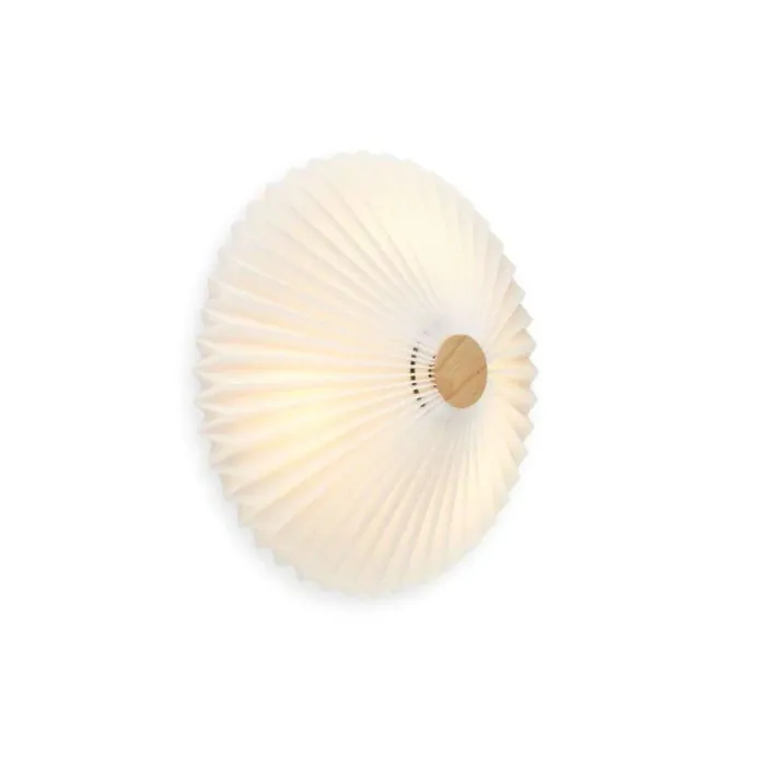 Avec ses courbes délicates, son abat jour en PVC plissé et ses finitions raffinées en chêne et laiton antique, l'applique/plafonnier Paris séduit par son allure à la fois élégante et intemporelle.