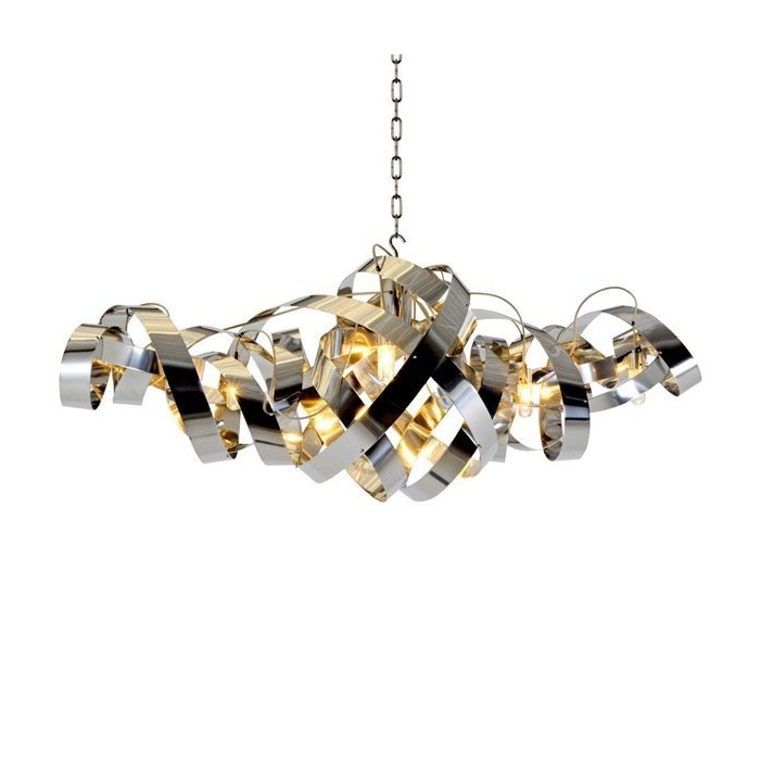 Cette suspension ovale, aux propriétés d’éclairage exceptionnel, est composée de feuilles en inox qui sont torsadées.