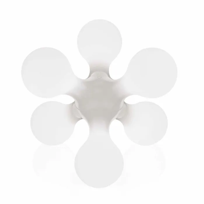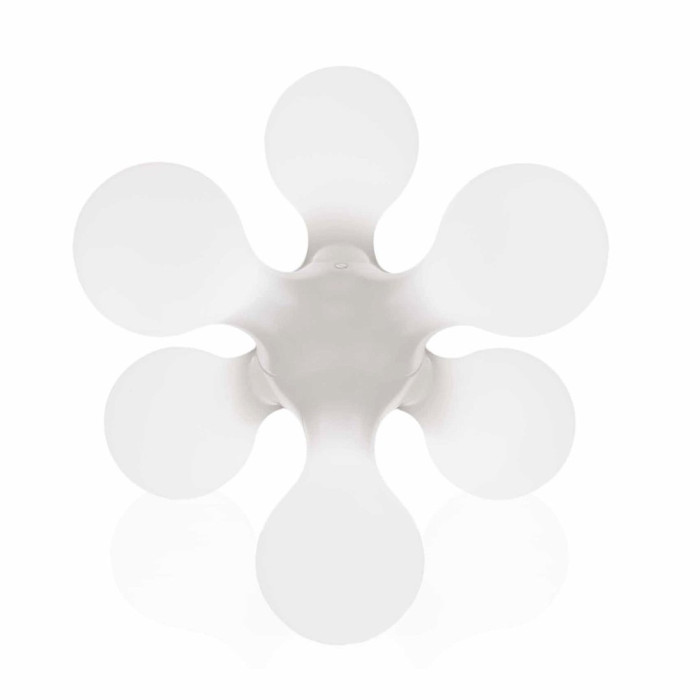Atomium est réalisée en polyéthylène découpé au laser et est équipée d'un câble d'alimentation de 250cm. Ce luminaire de salon diffuse une douce lumière grâce à six ampoules situées dans les formes arrondies et placées sur des ressorts torsionnés en acier qui permettent de les changer facilement.