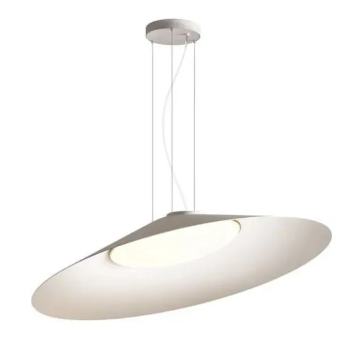 Cette suspension se distingue par sa structure en aluminium peint et son diffuseur opale, offrant une lumière douce et homogène.