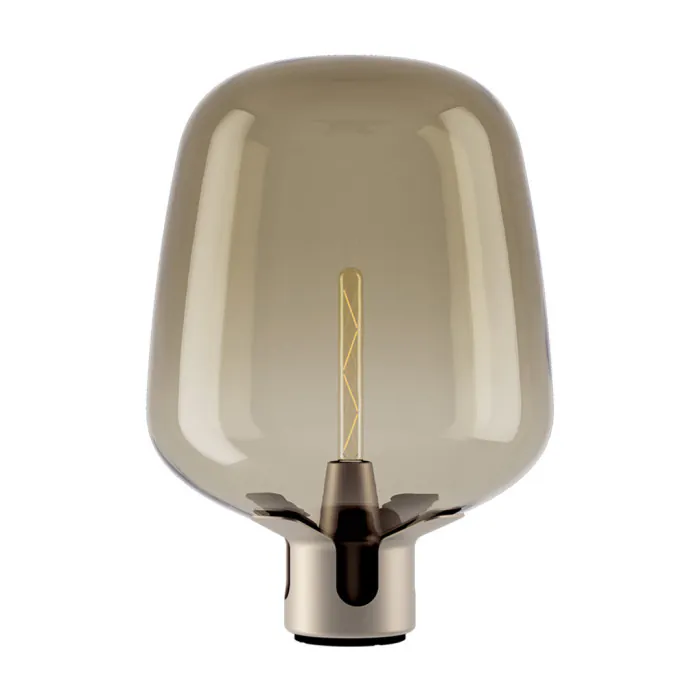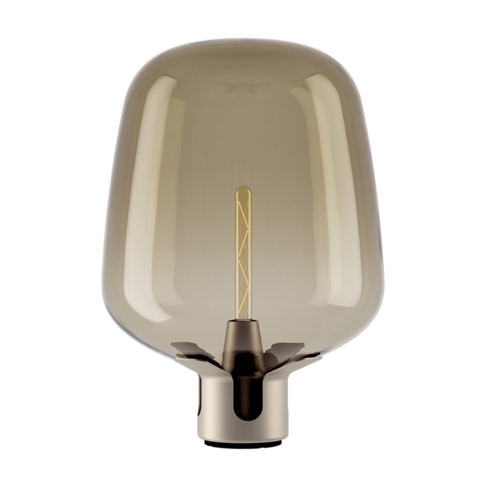 Elle est composée d'un fond en acier découpé au laser en 3D qui s'ouvre comme une fleur et qui encercle le globe en verre réalisé à la main.