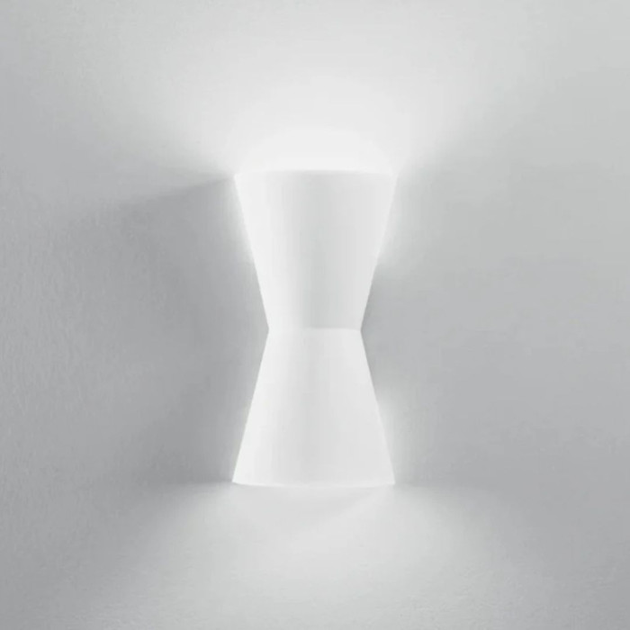 L'applique Clepsydra en plâtre vernis se distingue par son design inspiré de la clessidra (ou sablier), offrant une lumière à double émission qui crée une ambiance à la fois intime et sophistiquée.
