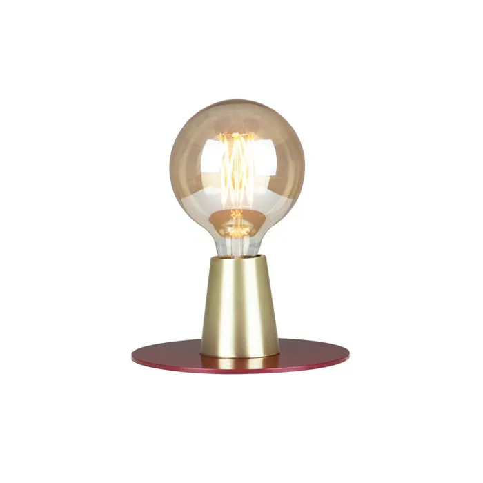 Fabriquée avec un cône robuste en laiton brossé verni, sur une plaque en métal finition rubis ou laiton brossé verni, elle trouvera sa place sur une console dans une entrée, une commode dans un salon, ou sur une table de chevet dans une chambre.