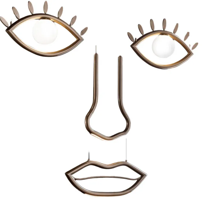 Cette création repousse les codes traditionnels du luminaire en transformant l’iconographie du visage en une œuvre lumineuse contemporaine. Le métal et le verre prennent ici une teinte chocolat profonde qui évoque un univers mystérieux et sensuel, offrant une dimension évocatrice rare.