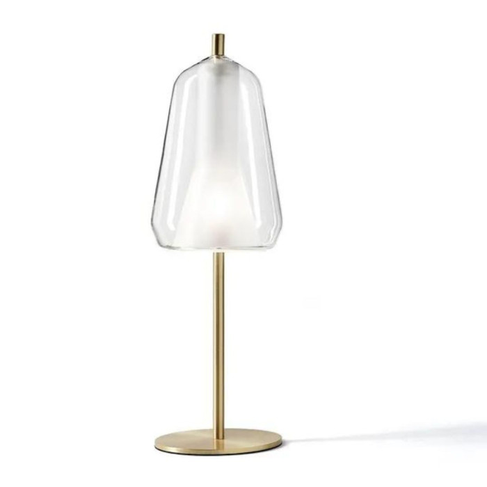 Elle est équipée d'une tige et d'un socle en finition or brossé avec un câble transparent muni d'un variateur.
