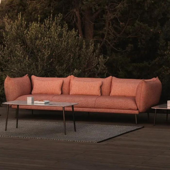 Piuma est conçue à la fois pour une utilisation prolongée en extérieur, grâce à la membrane osmotique, et pour offrir un confort accru, simulant un lit de jour, grâce au système d'inclinaison qui permet d'abaisser à la fois les accoudoirs et les dossiers.