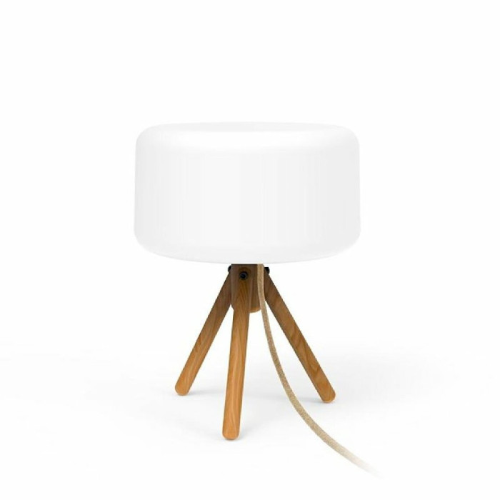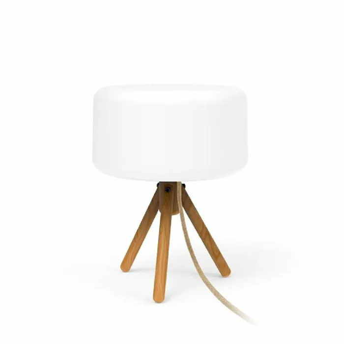 Elle est composé d’un pied tripode en bois naturel et d’un diffuseur de lumière cylindrique en polyéthylène opalin.