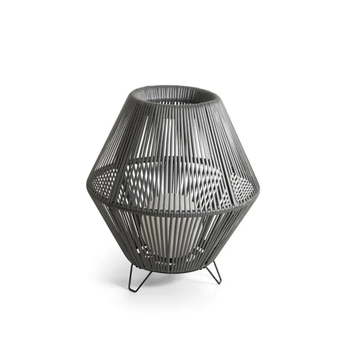 Fabriquée avec un mélange d'acier, d'aluminium et de rotin synthétique, de couleur anthracite et avec un IP65 pour une utilisation à l'extérieur.