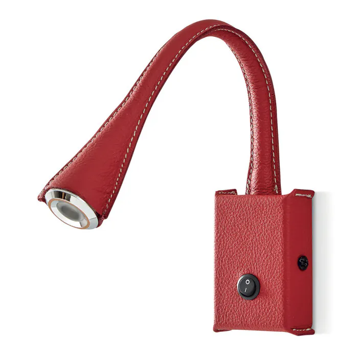 Design et très originale, cette liseuse en acier et recouverte de cuir naturel est disponible en quatre couleurs : blanc, noir, rouge et brun.
