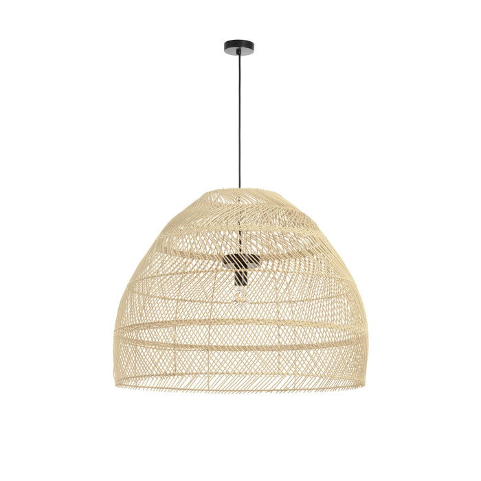 Fabriquée en acier, avec un abat-jour en fibre naturelle, elle est disponible en osier clair et en osier foncé et également en deux tailles.