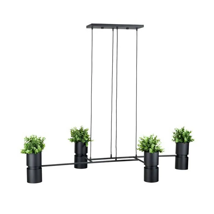 Fabriquée avec une structure cylindrique en acier et aluminium, avec une finition noire, vous pourrez agrémenter des spots de la suspension par une petite plante, par exemple.