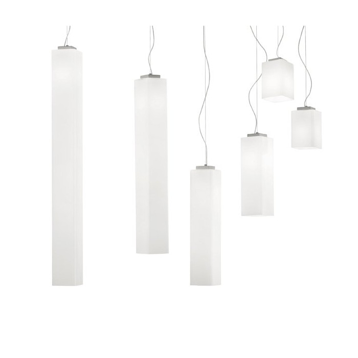 Elle est composée de cinq longueurs différentes d'éléments de verre de Murano, de forme rectangulaire, qui peuvent être utilisés en suspensions individuelles ou bien en combinaisons multiples.