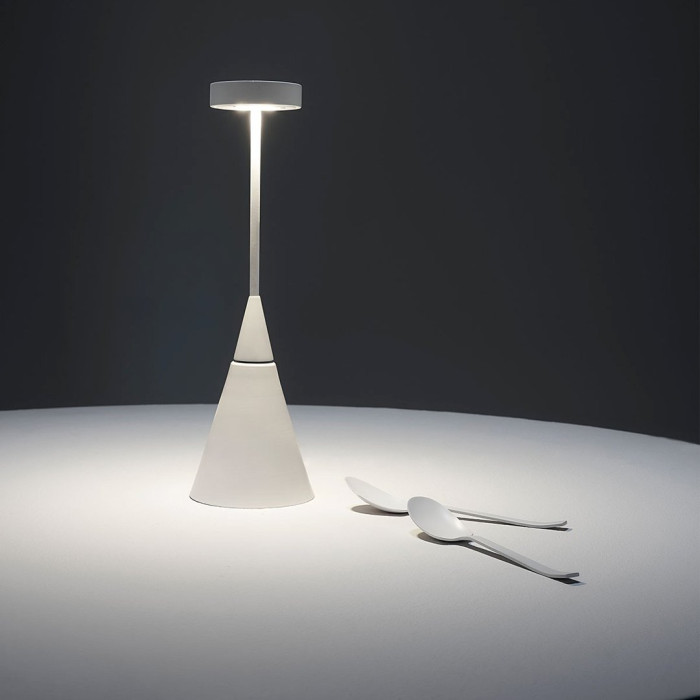 Lampe à poser sur batterie Fenex imaginée par Franco Zavarise pour la marque Zava Luce.
